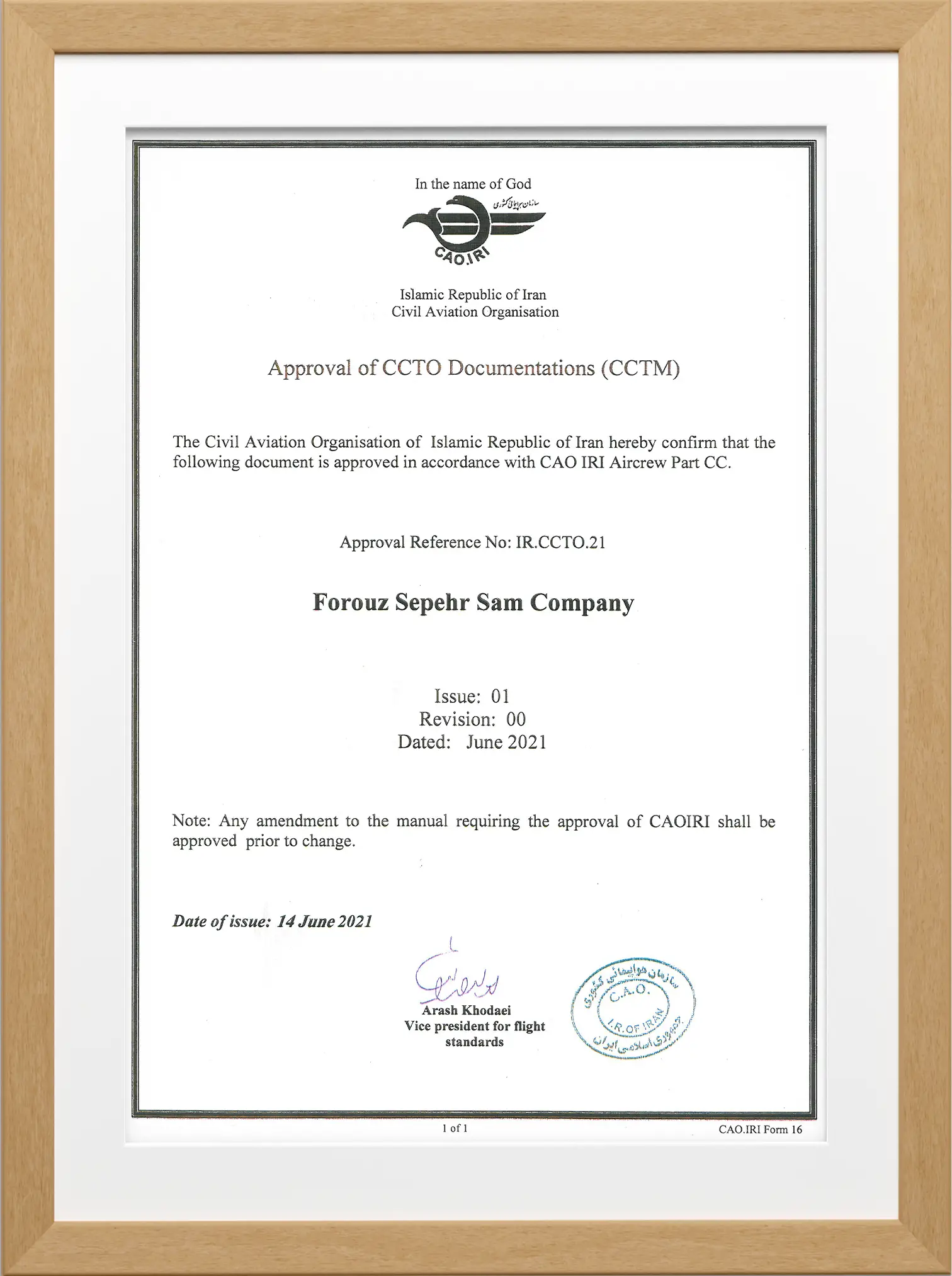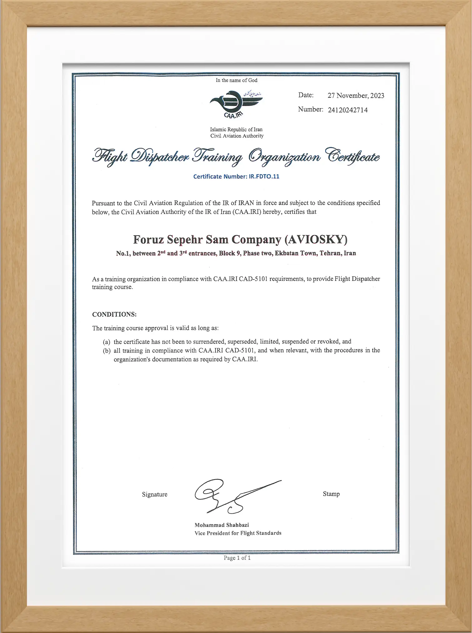 مجوزهای آموزشگاه خلبانی و هوانوردی اویواسکای